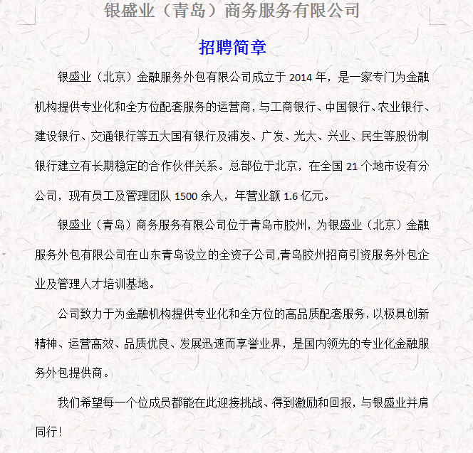 招聘提示:收取培训费、贷款培训,或在录用过程中需支付体检、服装、押金等费用、鼓吹出国出境务工短期内可获得丰厚报酬等都属违法行为,请求职者提高警惕,谨防上当受骗,如遇类似情况,请立即举报。校园招聘违规举报